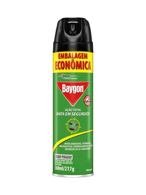 Poderoso para resolver seus problemas com insetos, Baygon Ação Total age rapidamente contra baratas e mosquitos/pernilongos, formigas, carapañas, muriçocas e moscas. Mata também o mosquito que pode transmitir a Dengue, o Zika Vírus e a Febre Chikungunya. Marca: Baygon Embalagem: Frasco 360ML