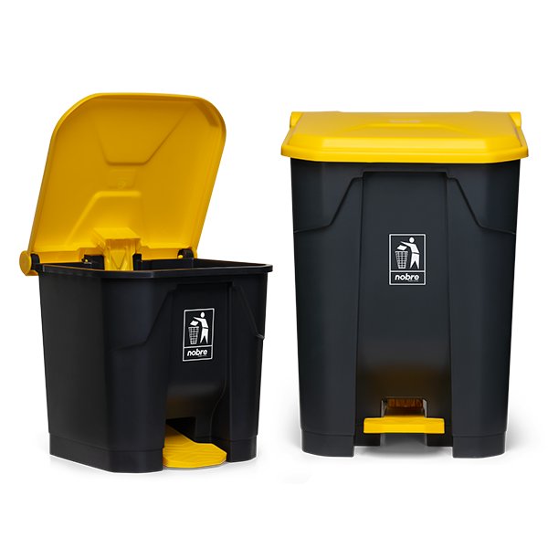 LIXEIRA PLÁSTICA COM PEDAL 35 L CINZA / AMARELO