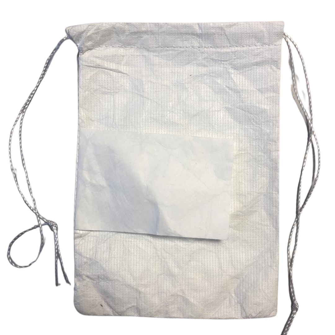Saco de amostra de rocha em PEAD(HDPE) cor branca com cordão em poliéster costura reforçada 11 x 14 cm "TYVEK DUPONT" Tecido Sintético